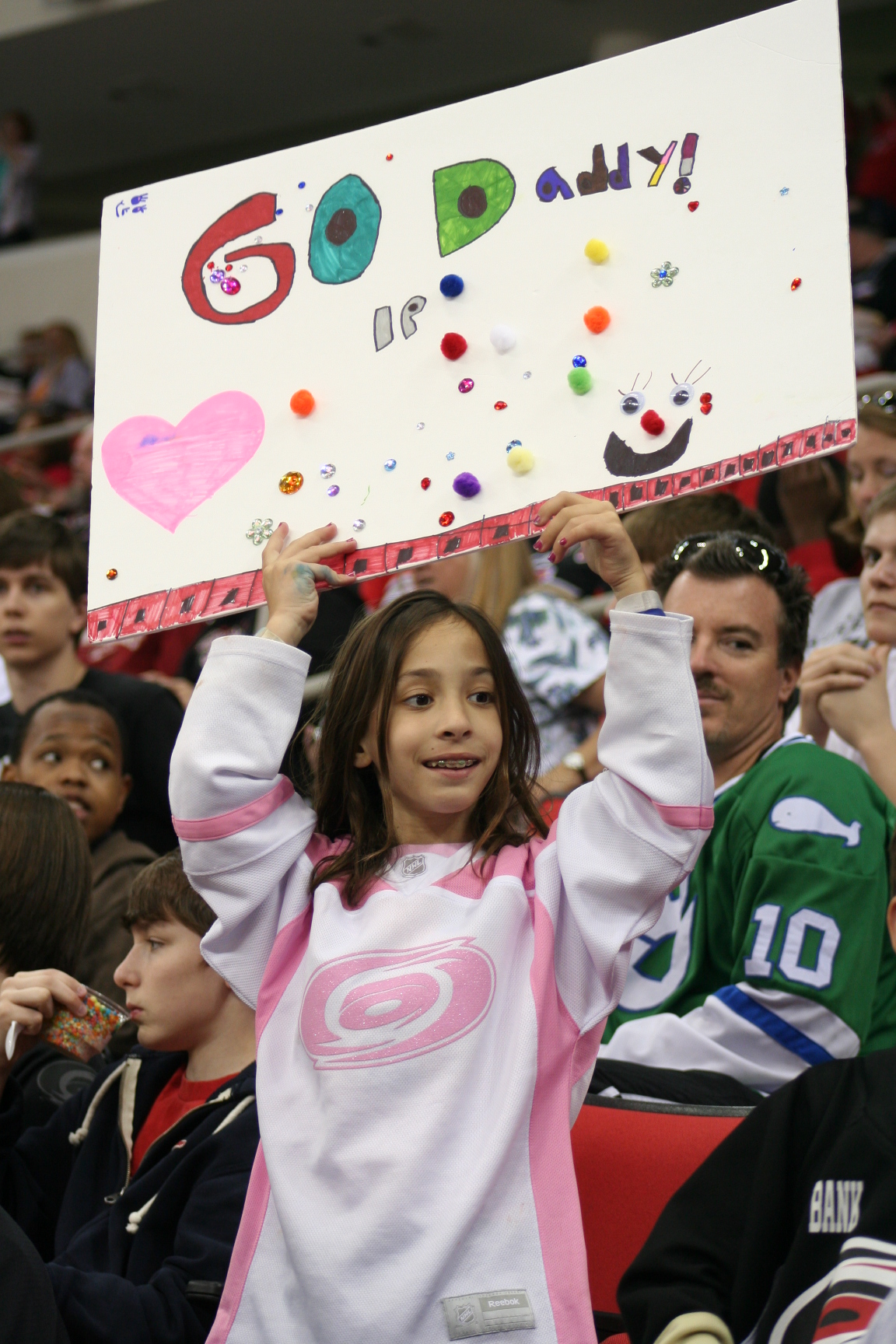 The Day started like most Sundays of late. We had to get up a bit early to head to my son, DJ’s hockey game. It was only his second game ever as a u8 player and he was raring to go. He managed to net 2 in an exciting game up at the Wake Forrest Ice House. (U8 hockey is like watching little kid soccer, everyone goes for the puck at all times and whoever can remain on their feet comes away with the puck and a good scoring chance) Then it was the drive home for a small snack and double check my bag to make sure I wasn’t forgetting anything when I got to the PNC Arena. Before I knew it, it was around noon and time to head to the Arena to start the day. I gave the kids and Mrs. a kiss and left them at home coloring in the signs they would bring to the game (my daughter was REAL into it which made my heart just melt watching her color in the red hurricanes squares at the bottom of the sign).
